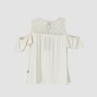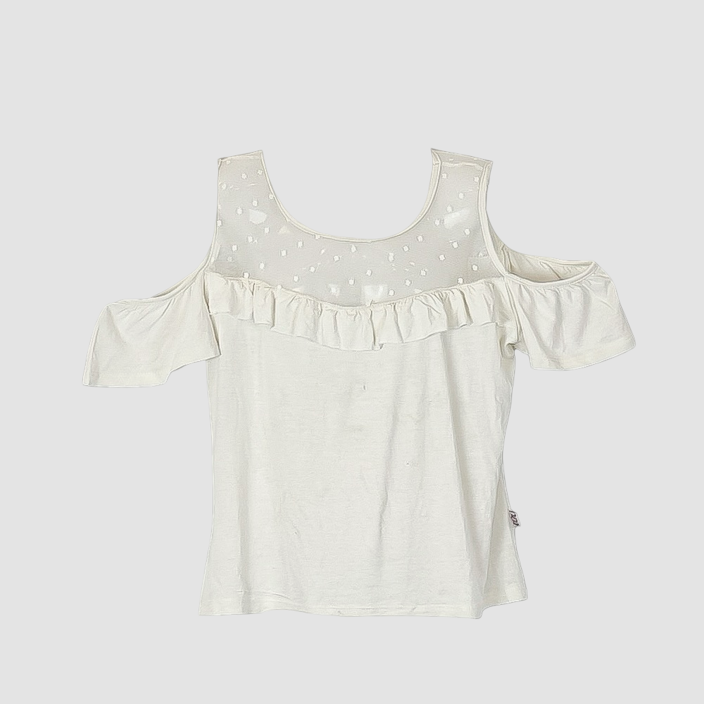 Polera, manga corta, Niña, Rose Feijao, Blanco, encajes y vuelo , sin hombros, 12, Aesthetic
