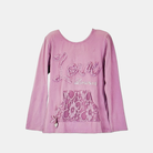 Polera, manga larga , Niña, Limonada, Morado, aplicación encaje y brillitos, 10, Aesthetic