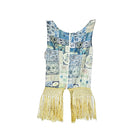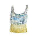 Polera, Sin mangas , Mujer, Juanita de León , Azul, Estampado rococó con flecos amarillos , M, Aesthetic