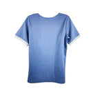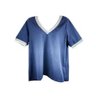 Blusa Manga Corta Mujer River Island Azul Cerrada Con Lineas Doradas y Blancas En Cuello L Beck