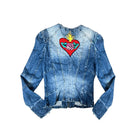 Chaqueta Manga larga Mujer Art Denim Azul Bordado de corazón con rosa en espalda M Chispa