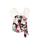 Polera, manga corta, Mujer, Nuna Lie, Blanco, estampado de rosas delantero y nudo al costado, M, Chispa