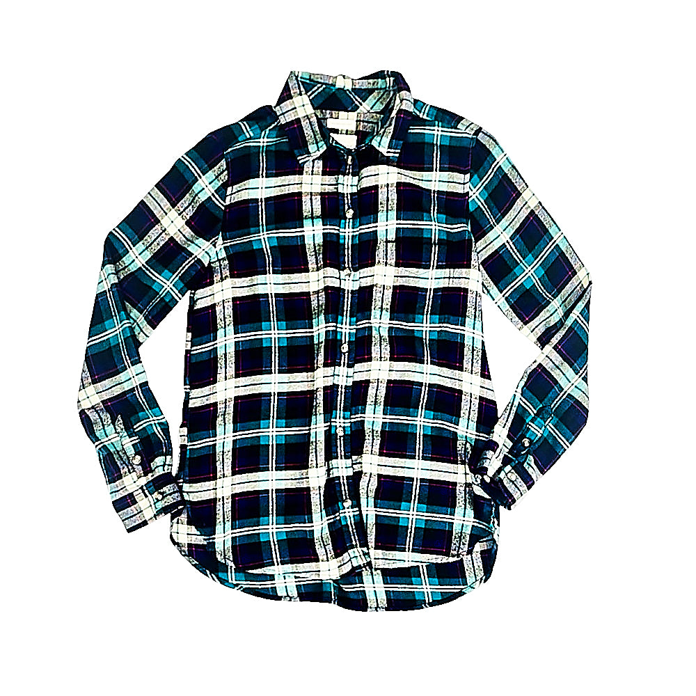 Camisa, Manga larga, Mujer, American Eagle, Azul, Cuadrille, lineas rojas, bolsillo en pecho, S, Dra Montse