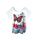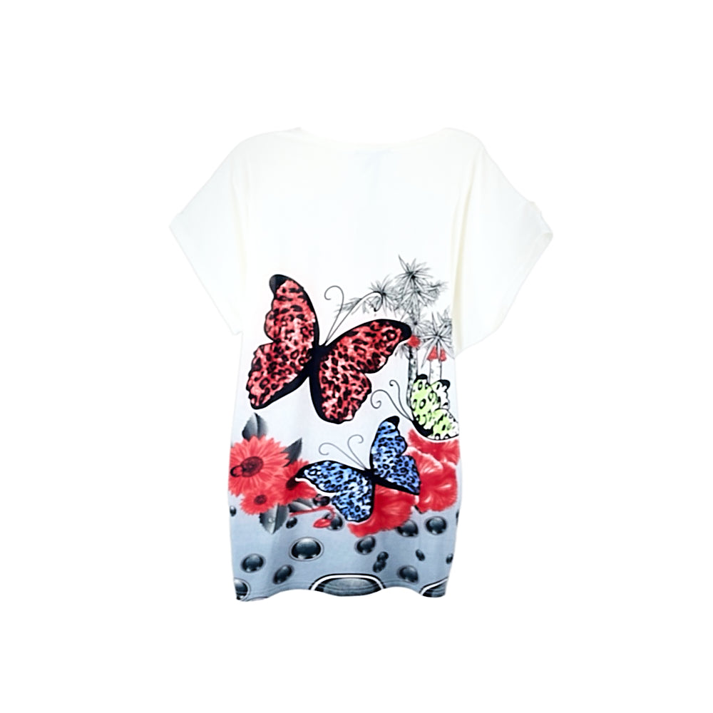Polera Manga corta Mujer Nadasha Bicolor Blanco con gris con mariposas y brillos M-L Dra Sofia Calcagni