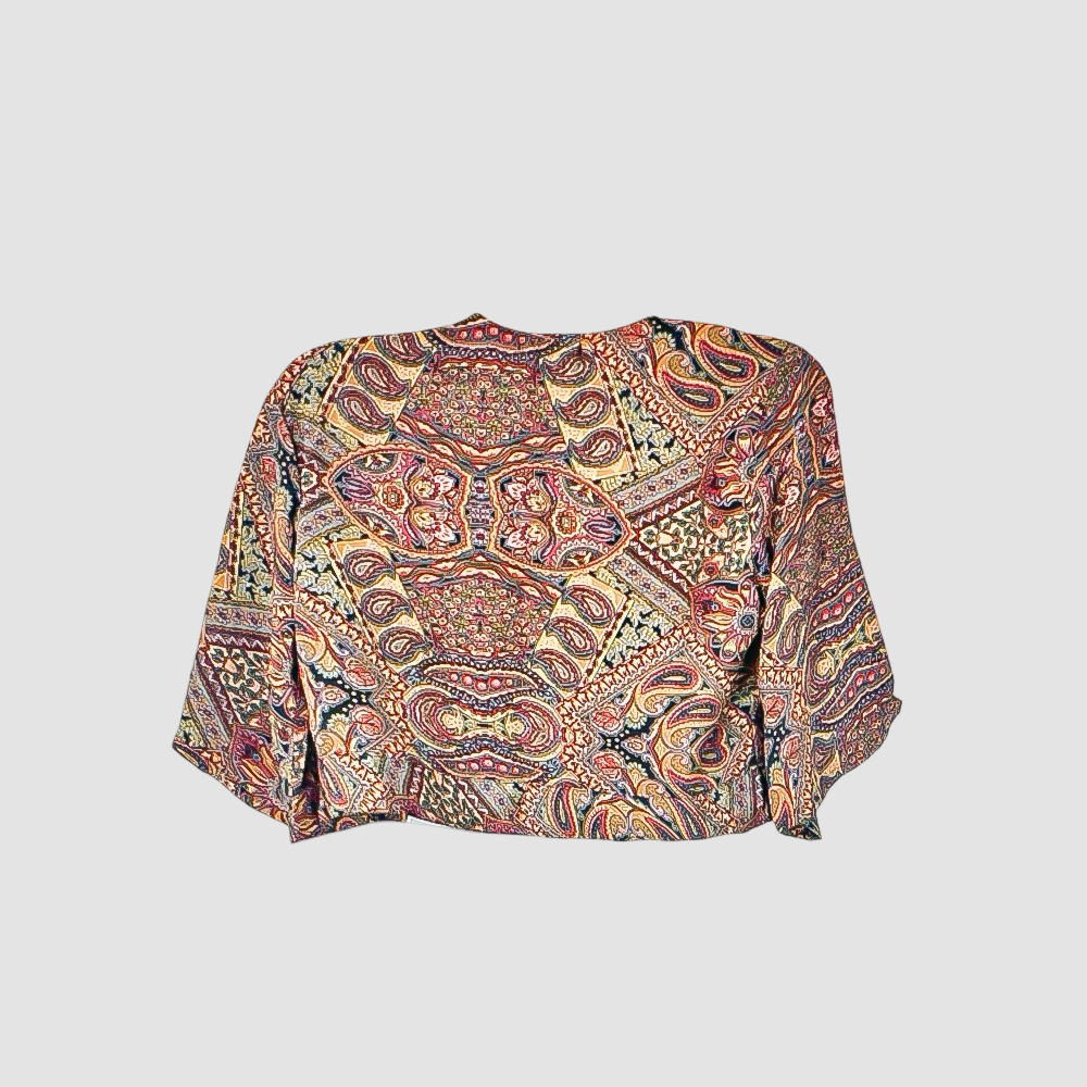 Polera, Manga corta, Mujer, Epifanía, Multicolor, Diseño oriental, amarillo, rojo, azul, con amarre adelante, S, Gigi Cristofanini