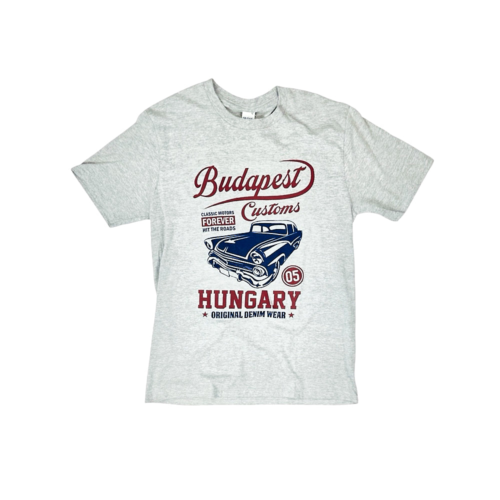 Polera, Manga Corta, Hombre, Gildan, Gris, Print Budapest, M, Bambi