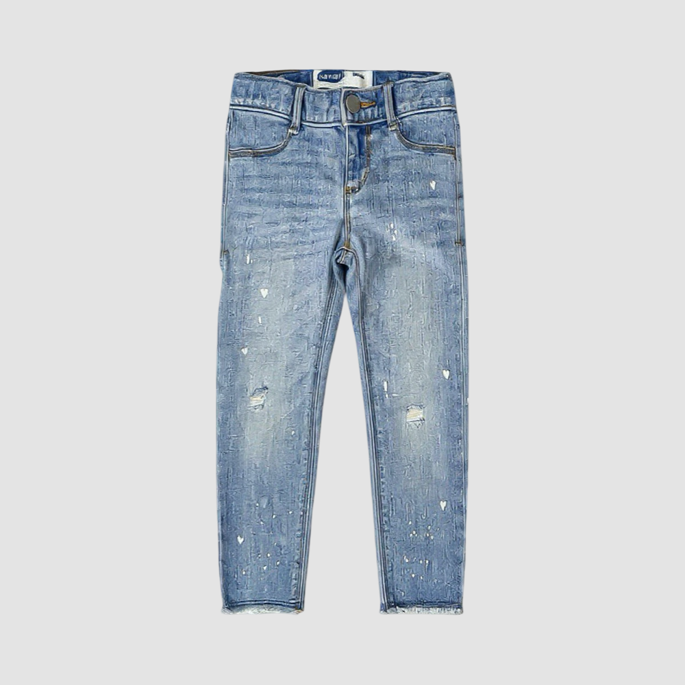Jeans, Largo, Niño, Old Navy, Celeste, Desgaste en rodillas, corazones y puntos blancos, 3, Katz