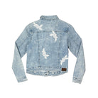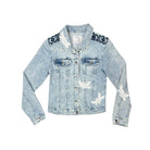 Chaqueta Manga Larga Niña Ficcus denim Celeste Aplicacion flores blancas y bordado azul en hombro 12 Lynch Y Preece