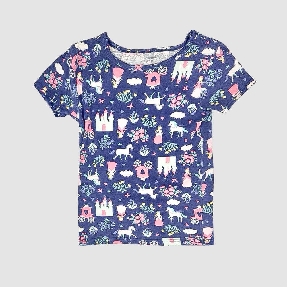 Polera, Manga corta, Niña, Carter's, Azul, Print princesas, 8, Aesthetic