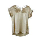 Polera Mangas Mujer Evoque Beige Dordado Tela Crepe Satinada M Lara