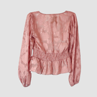 Blusa, Manga larga, Mujer, Nicopoly, Rosado, Crop top, cintura fruncida, escote en V, full encaje bordado, S, Lau Lozano