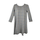 Vestido Manga Larga Mujer Stradivarius Bicolor Blanco y Negro Print Pata de Gallo y Lineas Amarillas S Lion