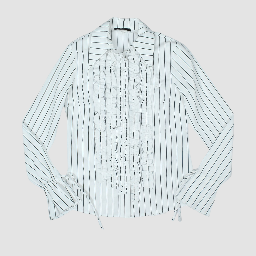 Blusa, manga larga, Mujer, BSM, Blanco, rayada vuelos delanteros, M, Maca Vargas