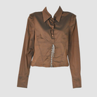 Blusa, manga larga, Mujer, Ossira, Café, botones cordon abajo, L, Maca Vargas