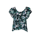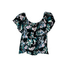 Polera, Manga corta, Mujer, American Eagle, Negro, Vuelo en mangas y escote, flores y plantas verdes/azules , XS, Dani Cayazzo