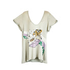 Polera, Manga corta, Mujer, Malva, Beige, Estampado tigre y loto, 100% algodón , M/L, Kabu