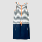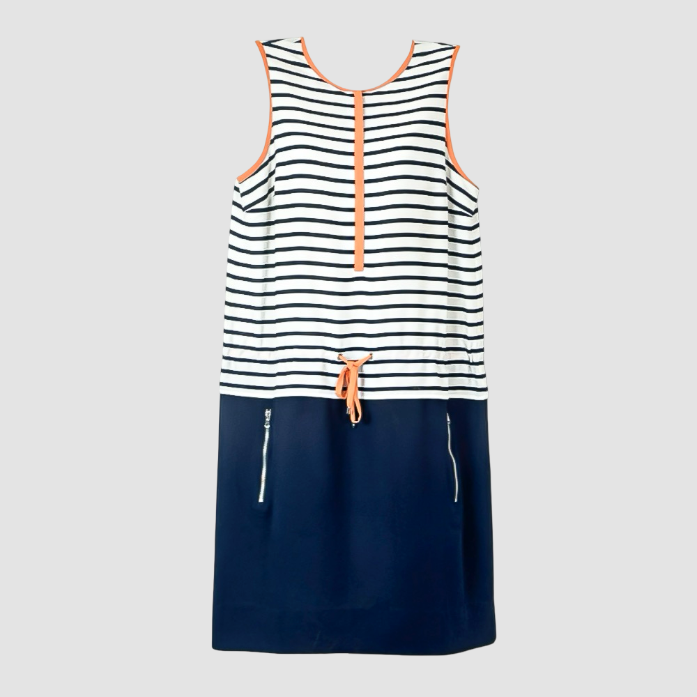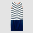 Vestido, midi, Mujer, Nautica, Bicolor, azul y rayadao con blanco, lazo, cuello y sisa naranjo, M, Chispa