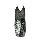Vestido, sin mangas, Mujer, Eagle rock, gris, brillante,lentejuelas plateadas, escote en V pavilo, L, Chispa