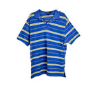 Polera Manga Corta Hombre Polo Azul Con Líneas Verticales Amarillas l Schiaffino