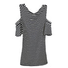Polera Hombros Descubiertos Mujer Trucco Negro Cuello V Print Rayas Blancas S Tamu Dides