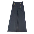 Pantalón Amplio Mujer Singolare Negro Con Botones En Costado y Print Hojas Grises 38 Schiaffino