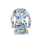 DETALLES TELA: Blanco y Azul Full Print Paisajes y Plantas, Manga Larga