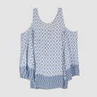 Blusa, Manga larga, Mujer, Wados, Azul, Sin hombros, full print mandala, M, AYA Moda Circular