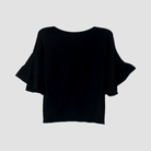 Polera, manga corta, Mujer, Zara, Negro, con vuelos, cuello redondo, corta, algodón, S, Carina Bouteille