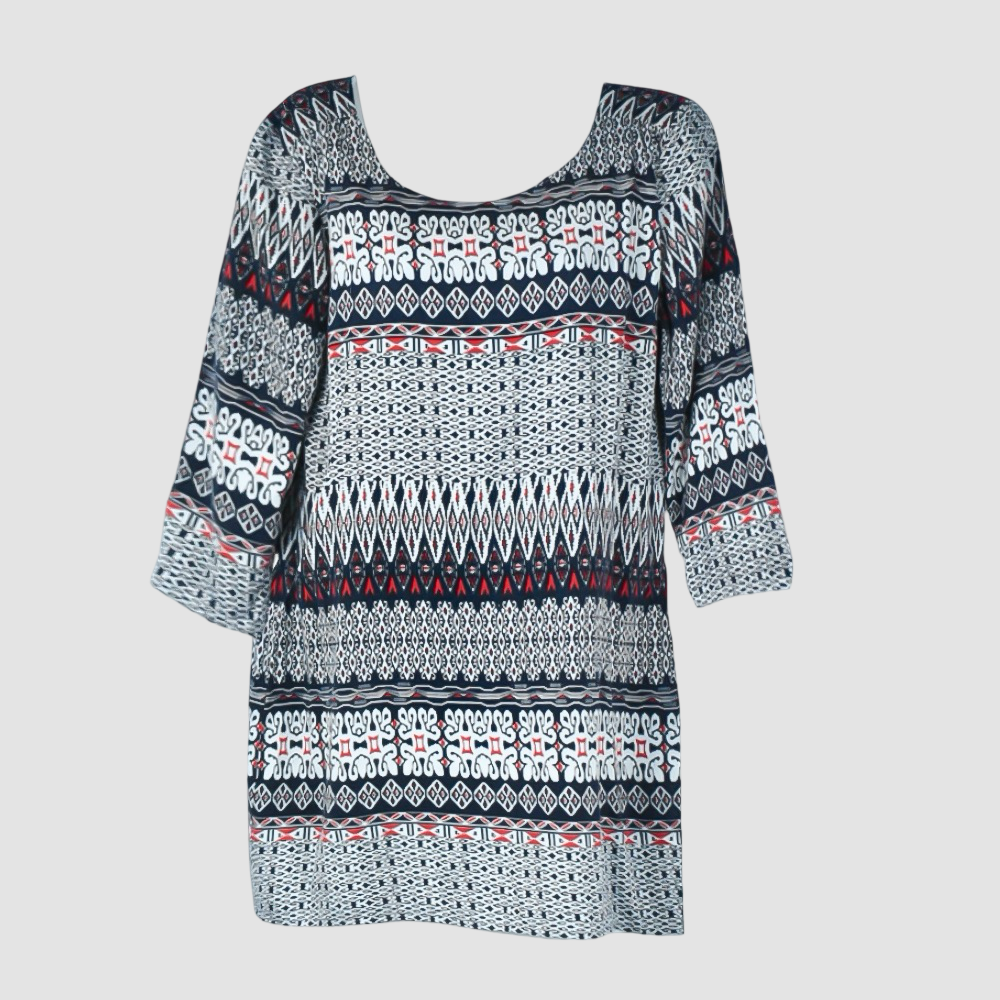 DETALLES TELA: figuras blancas y rojo manga larga