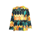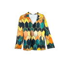 Blusa Manga Larga Mujer Sin Marca Multicolor Print Geometrico Naranjo Verde Amarillo Cerrada Cuello En V M Tity