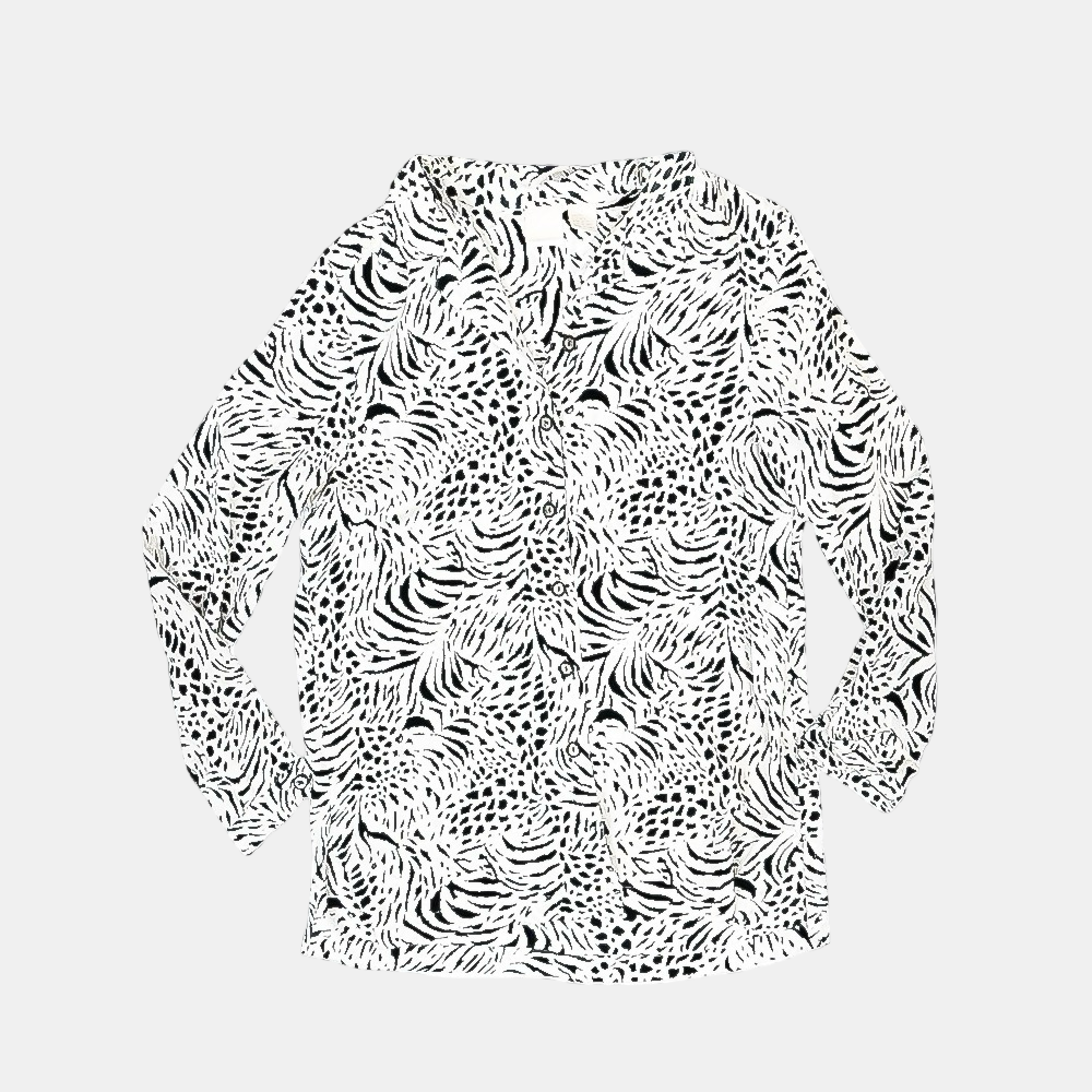 Blusa, manga larga, Mujer, Emma James , Blanco, 100% seda, animal print negro, S, Beasnake