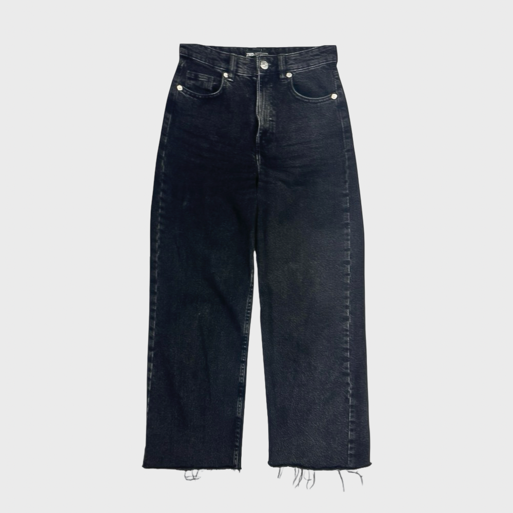 Pantalón, largo, Mujer, Zara, Negro, jeans, pata ancha, desflecado, 36, Beasnake