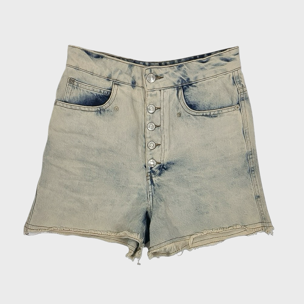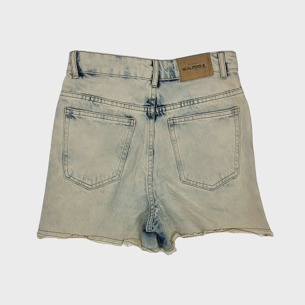 short, tiro alto, Mujer, Scalpers, Celeste, jeans abotonado, desflecado, gastado, S, Beasnake