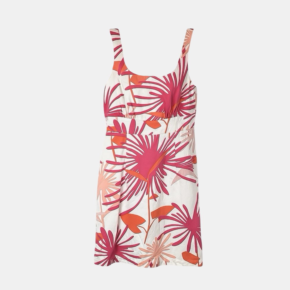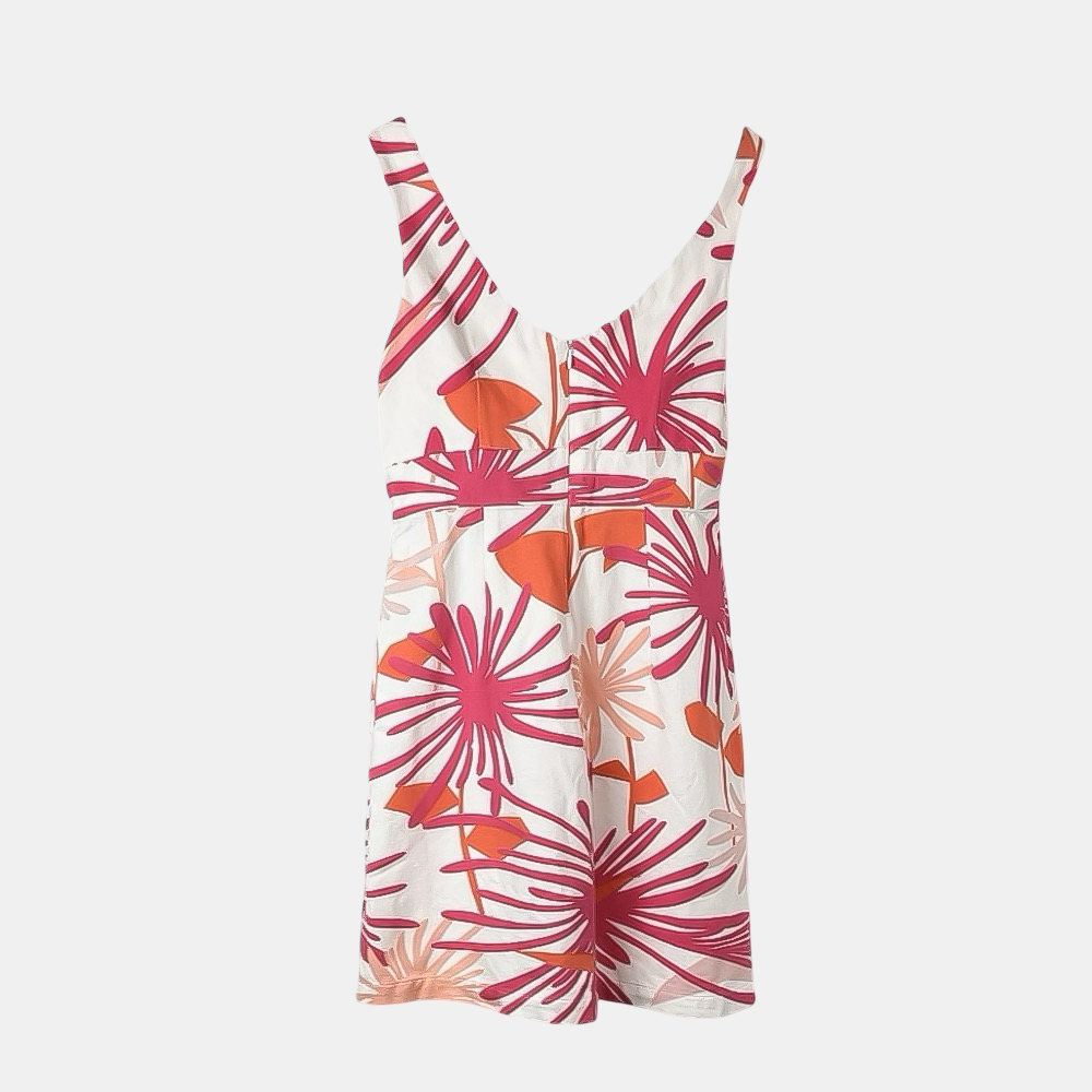 Vestido, Sin mangas, Mujer, Tori Richard, Blanco, Print figuras fucsia y naranjas, cierre invisible atrás, S-M, Lauchavita