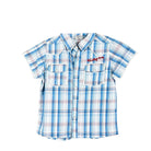 Camisa Manga Corta Niño Colloky Celeste A Cuadros Líneas Blancas Y Rojas 12-18M Uschi