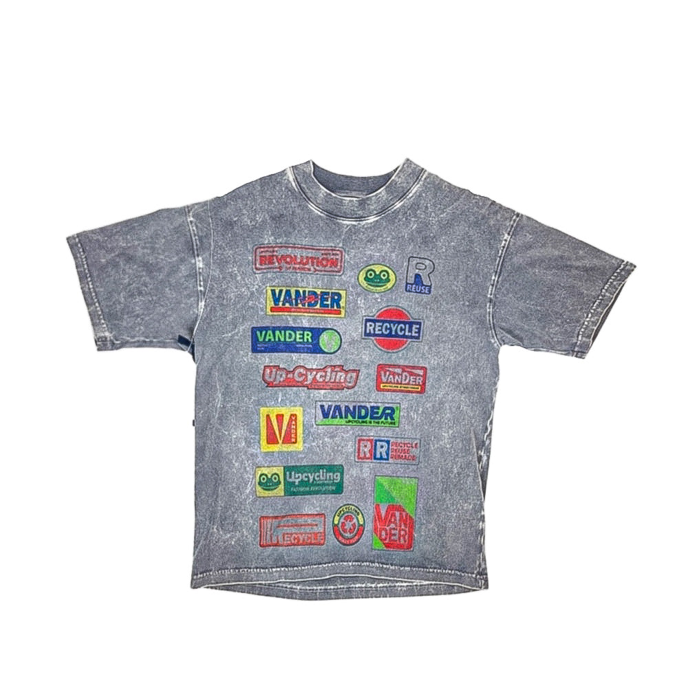 Polera Manga Corta Unisex Vander Gris Print Logo Vander y Reciclying L Vander