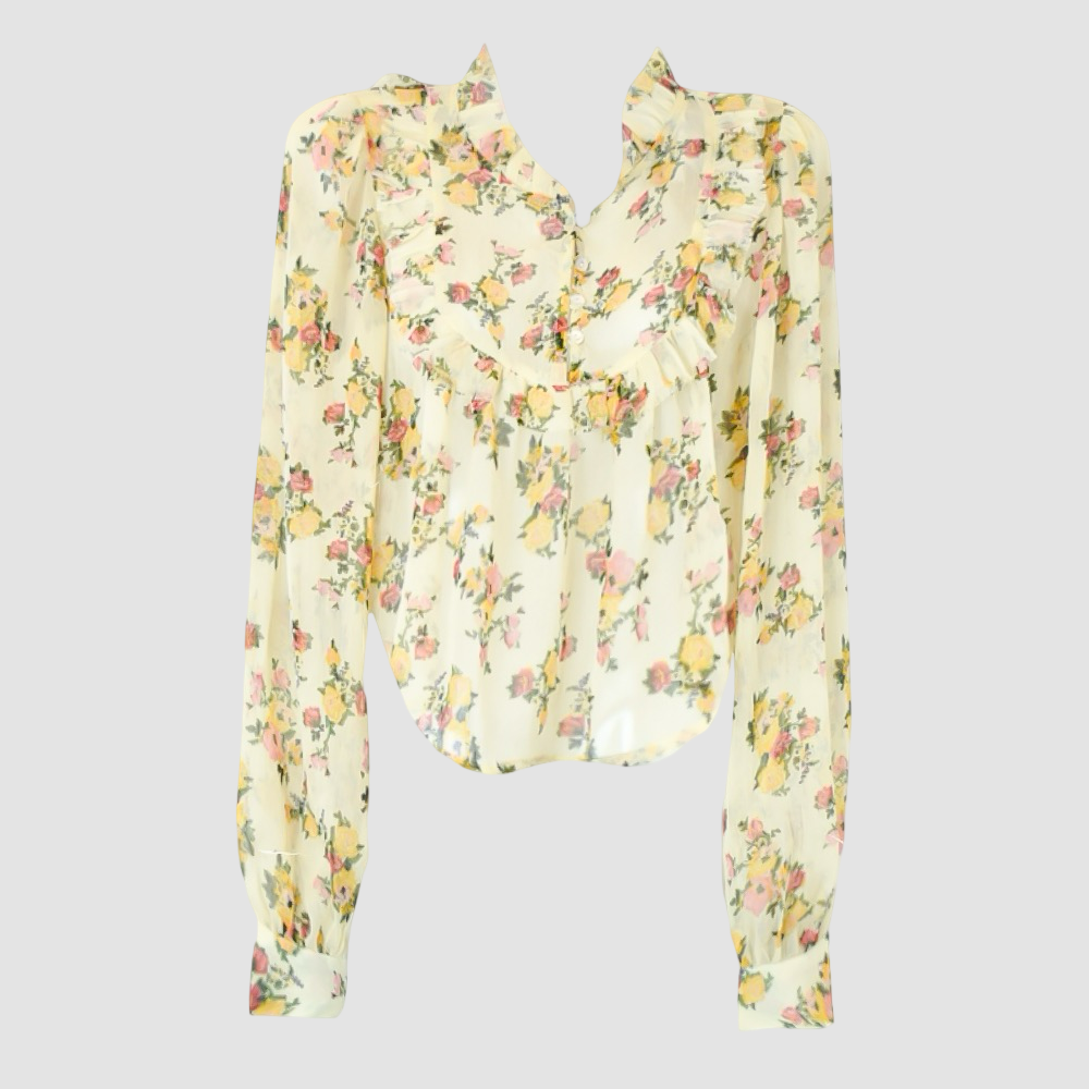 Blusa, manga larga, Mujer, NO BO, Beige, corta, con vuelos , XS, Pao Vargas