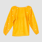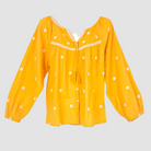 Blusa, manga larga, Mujer, Waikiki, Amarillo, cuello redondo con amarre y bordado, bordado flores blancas, mangas elasticadas, 38, Carlos Valero