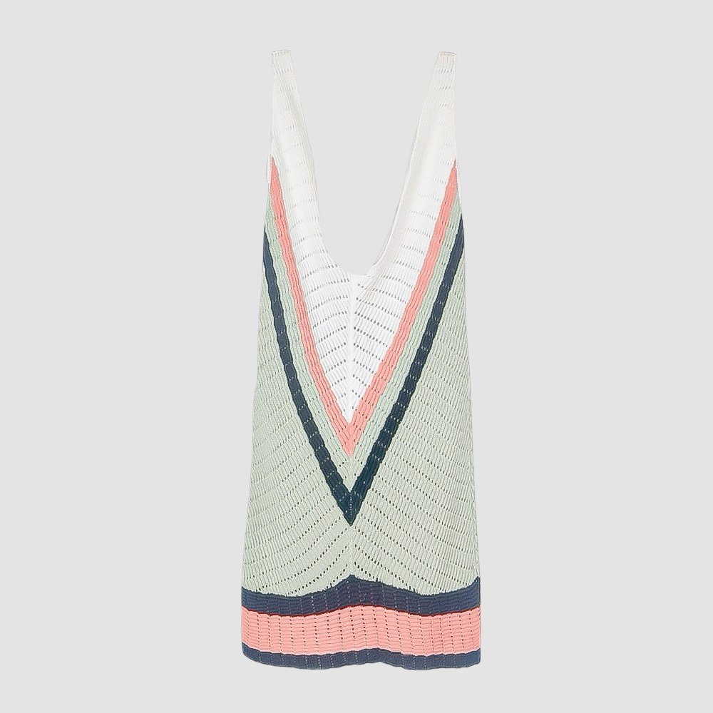 Vestido, Mini, Mujer, Americanino, Crema, Sin mangas, franjas salmón verde negro, XS-S, AYA Moda Circular