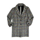 Abrigo, Manga larga, Mujer, Topshop, Gris, Cuadrille blanco-negro, lineas de color amarillo y rosado, S, Dress Code