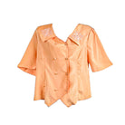 Blusa Manga Corta Mujer Laura Werosi Naranjo Damasco Satinada Abotonada Con Bordado En Cuello Con Hombreras L Chispa