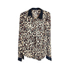 Blusa Manga Larga Mujer Sin Marca Beige Animal Print Leopardo Cuello Negro M Chispa