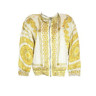 Chaqueta Delgada Mujer La Costa Blanco Con soles y diseños amarillos con hombreras oversize S Anonima