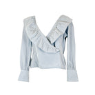 Chaqueta, Manga larga , Mujer, Pancaldi & B, Celeste, Con vuelos, escote en V , XS, Cote Morel