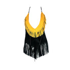 Crop top Corto Mujer Milwaukee Leather Negro Con flecos amarillos S Anonima