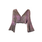 Crop top, Manga corta, Mujer, OML, Morado, Lila y gris, escote en V, elasticada, L, Anónima