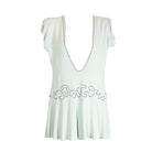 DETALLES TELA: Agua, Algodón elasticado, Cuello en V rebajado con detalles mostacillas
