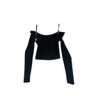 Polera, Manga larga, Mujer, Calvin Klein, Negro, Croptop, hombros descubiertos, L, Anónima