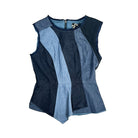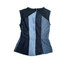 Polera Sin mangas Mujer BCBG Azul Jeans alternado flecos en bordes M Anonima