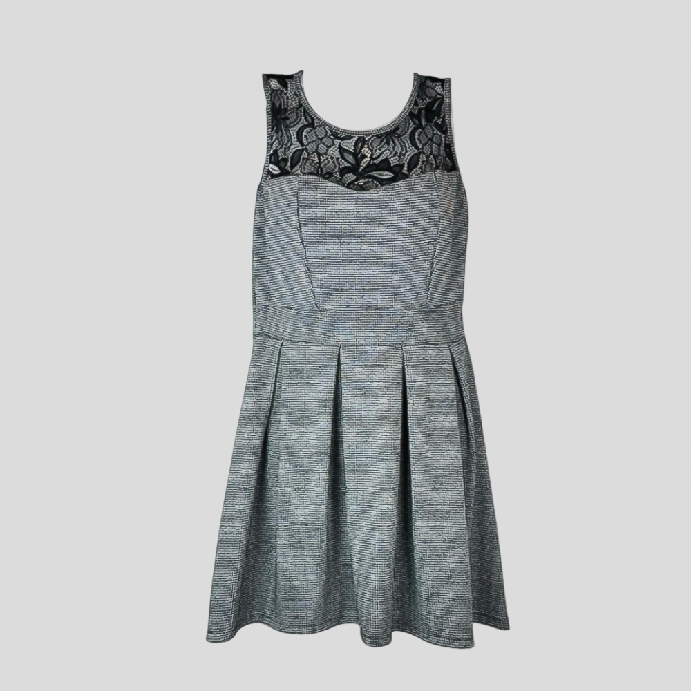 Vestido, Sin mangas, Mujer, Sin Marca, Gris, Midi, full print pata de gallo, encaje , 38, Cata Pinto